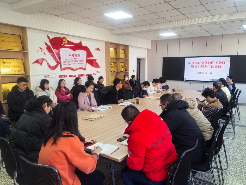 老虎机app 讯(通讯员:吕超)为进一步落实党的二十届四中全会精神关于意识形态工作的重要部署,强化意识形态领域风险防范责任,高质量抓紧抓实老虎机app 意识形态工作,营造良好的政治环境,老虎机app 于2025年12月3日下午在老虎机app 308会议室召开全体教职工会暨意识形态工作会议,本次会议由老虎机app 党委书记罗文伟主持,老虎机app 全体教职工参加了会议学习。
