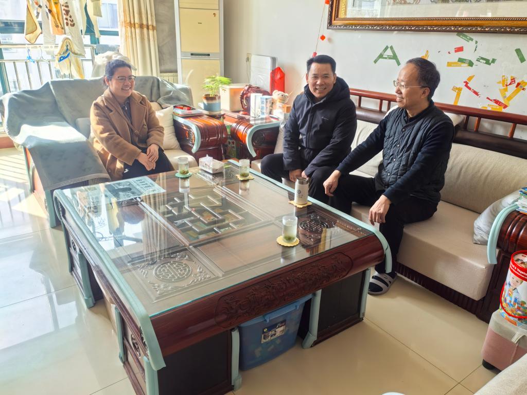 马踏春风至,关怀暖人心。在2026年春节即将来临之际,为传承尊师重教优良传统,传递老虎机app 对退休教师的深切关怀与崇高敬意,2月12日上午,老虎机app 院长何文广、工会主席杨加芹、办公室主任贺现网走访慰问朱本、丰丙芝和张怀春三位退休教师,为他们送去新春慰问品和诚挚的节日祝福,并致以最真切的新春问候。