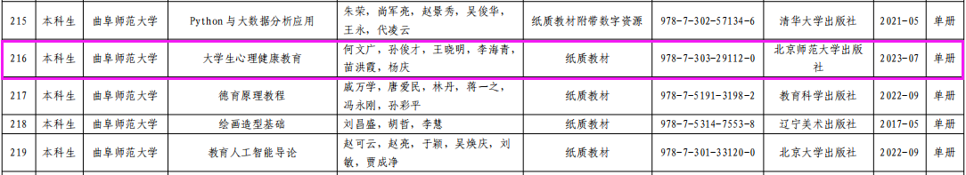 何文广教授主编的《大学生心理健康教育》教材入选。