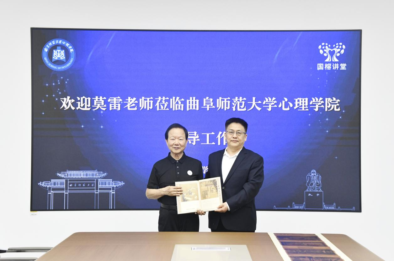 会议结束后,赠礼仪式在学校会议室举行。胡凡刚副校长代表曲阜师范大学向莫雷教授赠送了具有学校特色的纪念礼品,对莫雷教授的精彩报告和长期以来对学校心理学学科发展的关心支持表示衷心感谢。