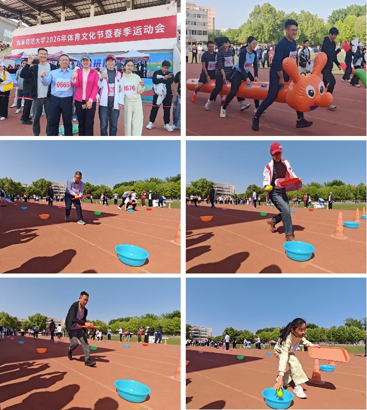 春和景明,活力涌动。2026年4月23-24日,曲阜师范大学 2026 年体育文化节暨春季运动会隆重举行。老虎机app 教职工积极响应、踊跃参与,在激烈的竞技比拼与趣味赛事中尽显风采,以昂扬姿态诠释体育精神,用协作热血展现团队凝聚力,成为赛场上一道温暖又亮眼的风景线。赛场之上,竞技与趣味交织,拼搏与欢乐同行。除了紧张刺激的常规竞技项目,自行车慢骑、抢收抢种、趣味毛毛虫、中老年长跑等教师组趣味赛事同样热闹非凡,参赛老师们精神抖擞、斗志昂扬,在轻松愉悦的氛围中释放活力、享受运动。